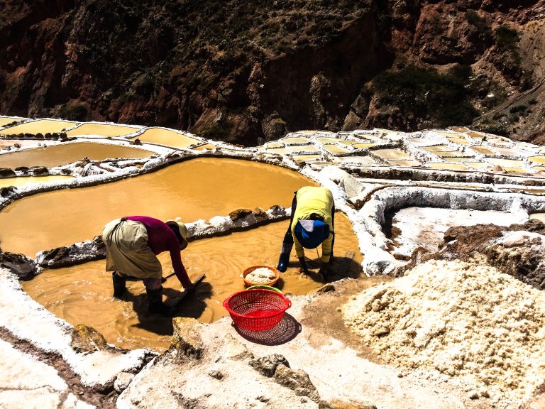 Leaving Huacatay restaurant, we will move towards the amazing pre-Hispanic salt mines of Maras to experience the history of the largest salt mines in the Andes. The last archaeological attraction will be the ancient agricultural place of the Inca Moray, located on the small plateau of Maras. On the way back to Cusco, we will stop at a local weaving industry where local women from Chinchero will show you how they still use flowers, roots, and seeds to dye the wool of alpacas and llamas and demonstrate the weaving process of making blankets and other products. They will also offer you a cup of MUÑA tea or the local mint while they explain their work.