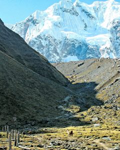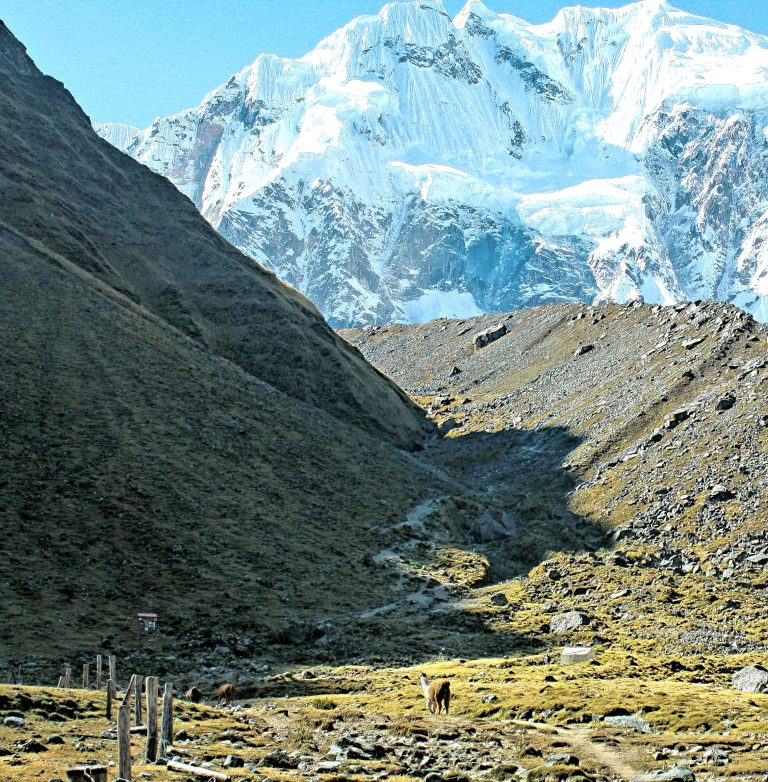 The trail begins with a gradual uphill for 1.5 hours to the breathtaking colored lake of Huamantay. After a good time here, we will get back down to Soraypampa for lunch. The afternoon hike is about 2 more hours on the gradual trail near the base of the tallest mountain in the area, called Salkantay, which offers us a spectacular view.